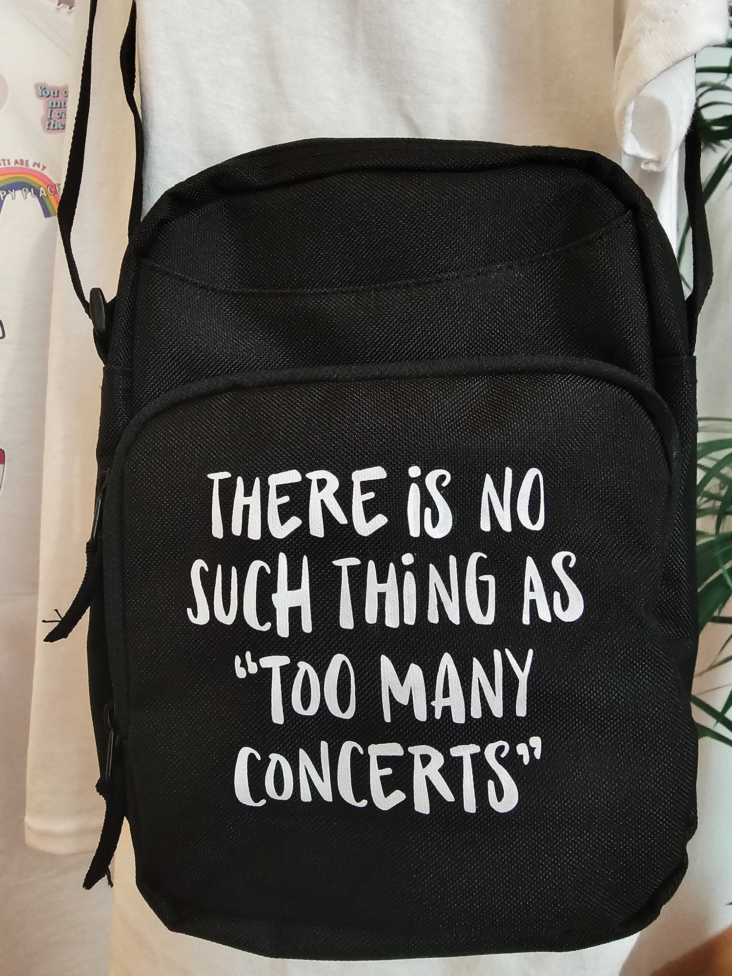 Finde Deine neue Lieblingstasche für Dein nächstes Konzert. Kleiner als DINA4, damit Du sie safe mit in die Konzerthalle nehmen kannst, handbedruckt mit Konzertsprüchen.