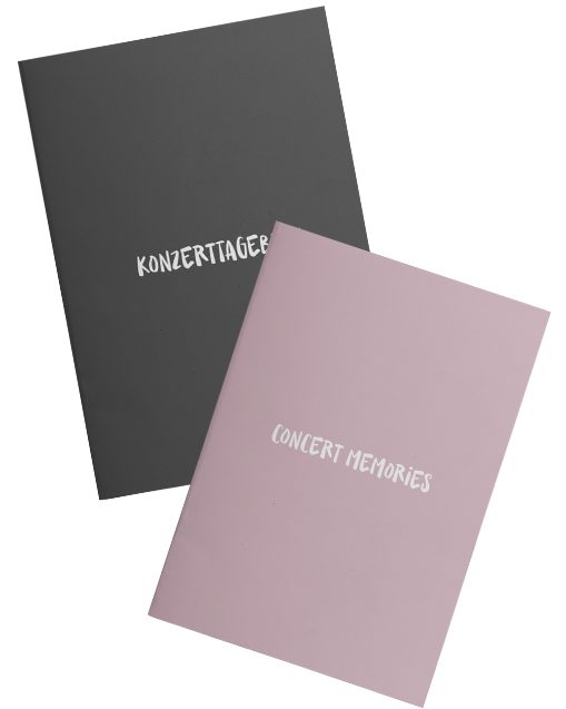 Volume 1 bis 4 - von schwarz zu pink, einer Schreibmaschinenversion: Die Konzerttagebücher gibt es mittlerweile in vielen verschiedenen Ausführungen und Farben. Achte auf die Beschreibungen und Grafiken in der Galerie, damit Du Dich für das richtige Tagebuch entscheidest.
